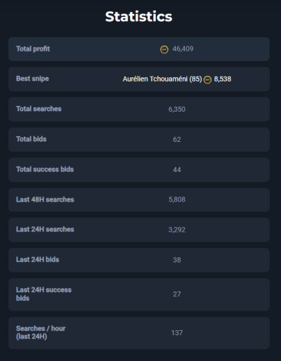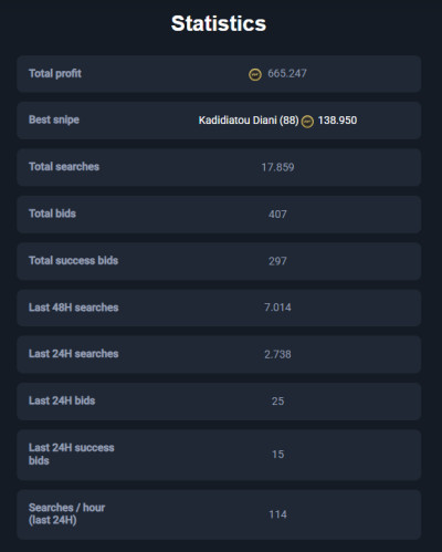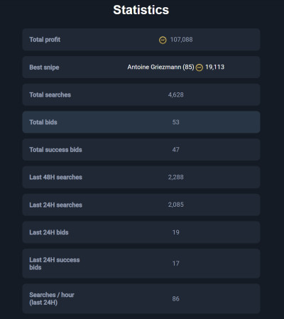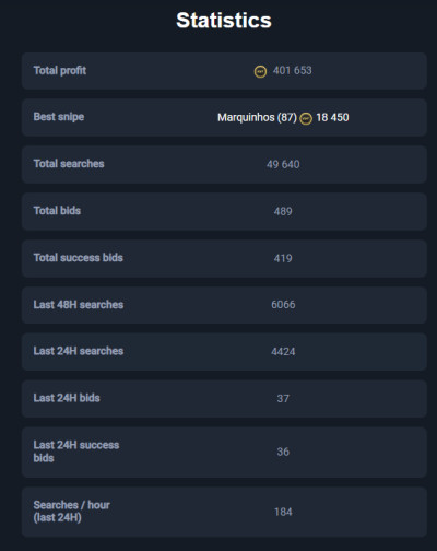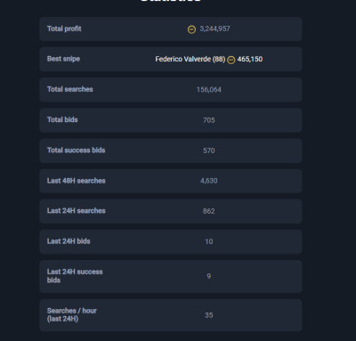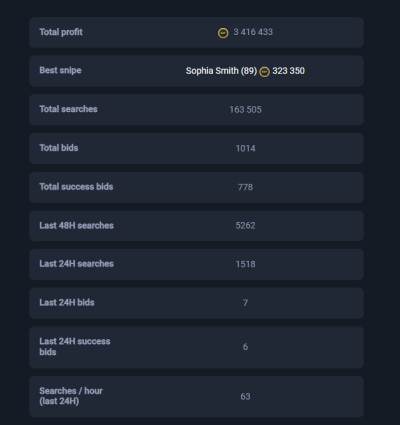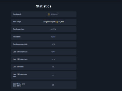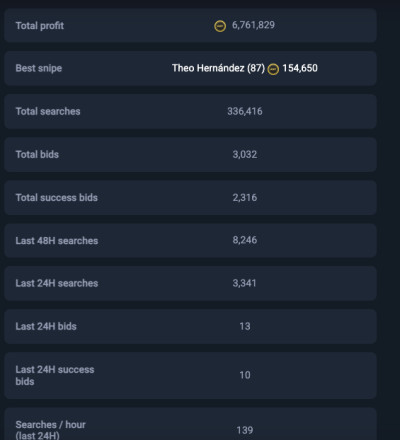 MoreEarn 5+ million coins per month with our all-in-one service. Secure & user-friendly autobuyer, sniping filters, and professional investment tips.